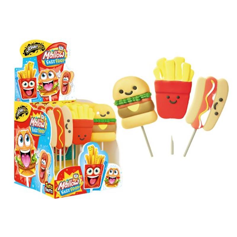 Lecca lecca al marshmallow con le figure dei prodotti più venduti al fast food