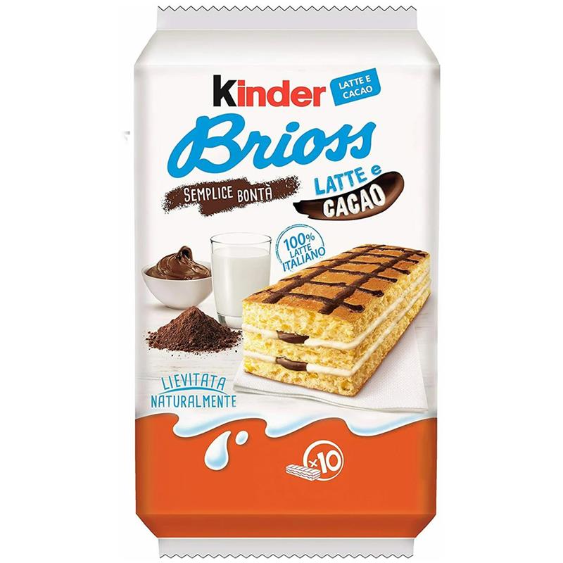 Kinder Brioss Latte e Cacao: morbida merendina con farina selezionata, latte fresco e cacao. Soffice, leggera e golosa, ideale per colazione e merenda.