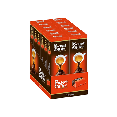 Pocket coffee vero caffè liquido100% arabica in un guscio finissimo di cioccolato.