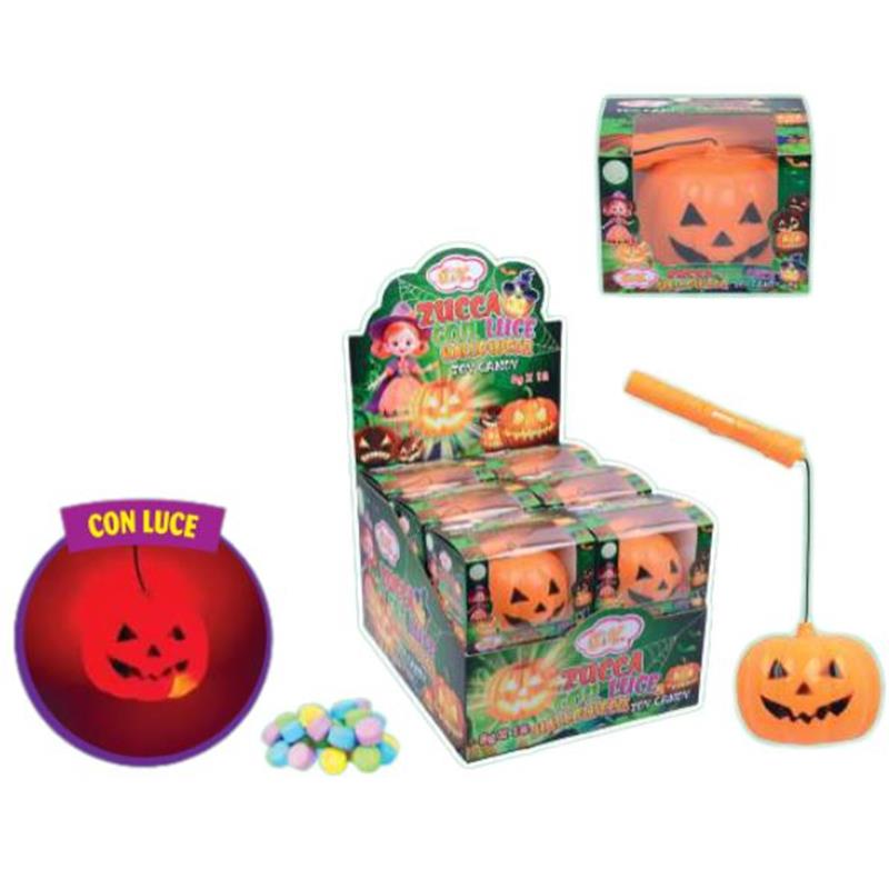 Giocattolo di Halloween a forma di zucca che si illumina e con caramelle alla frutta, articoli per feste e per bambini