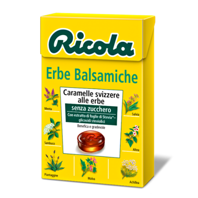 La caramella Ricola Erbe Balsamiche è la variante senza zucchero