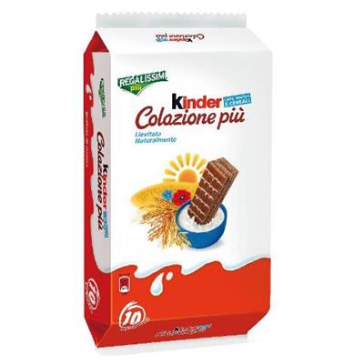 Kinder Colazione Più: barretta di cereali integrali con latte e copertura di cioccolato al latte. Una colazione leggera e nutriente, perfetta per iniziare la giornata