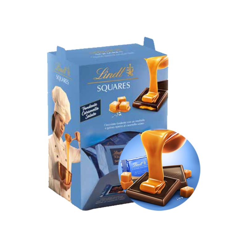 Expo Lindt Squares Fondente E Caramello Salato 1,2 Kg : Cioccolato Latte Con Ripieno Al Caramello Salato.