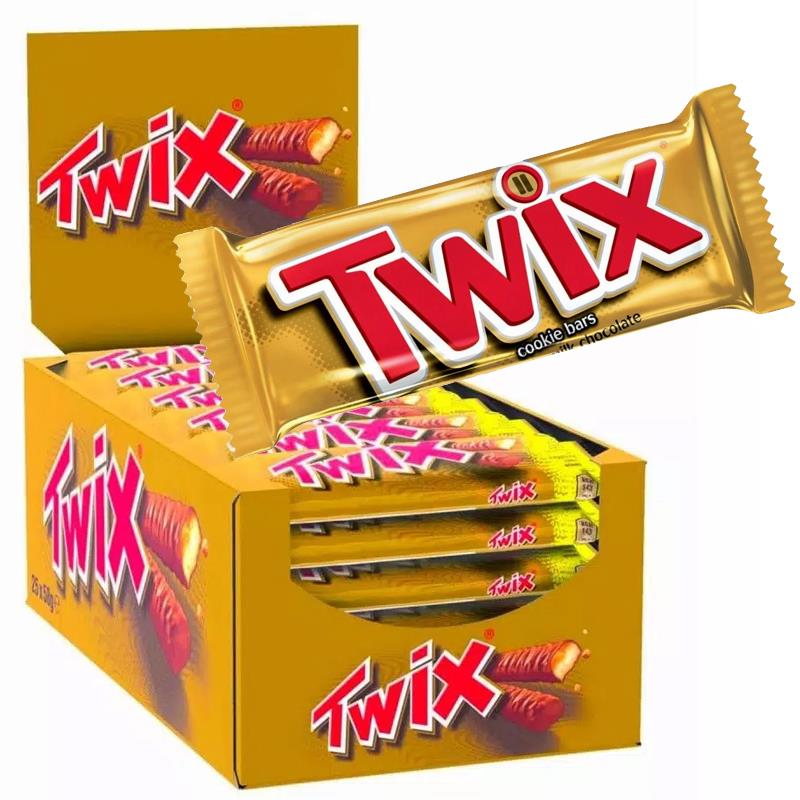 Twix è una barretta di cioccolato, composta da un guscio di cioccolato al latte che avvolge un cuore di biscotto croccante e una sottile colata di caramello morbido