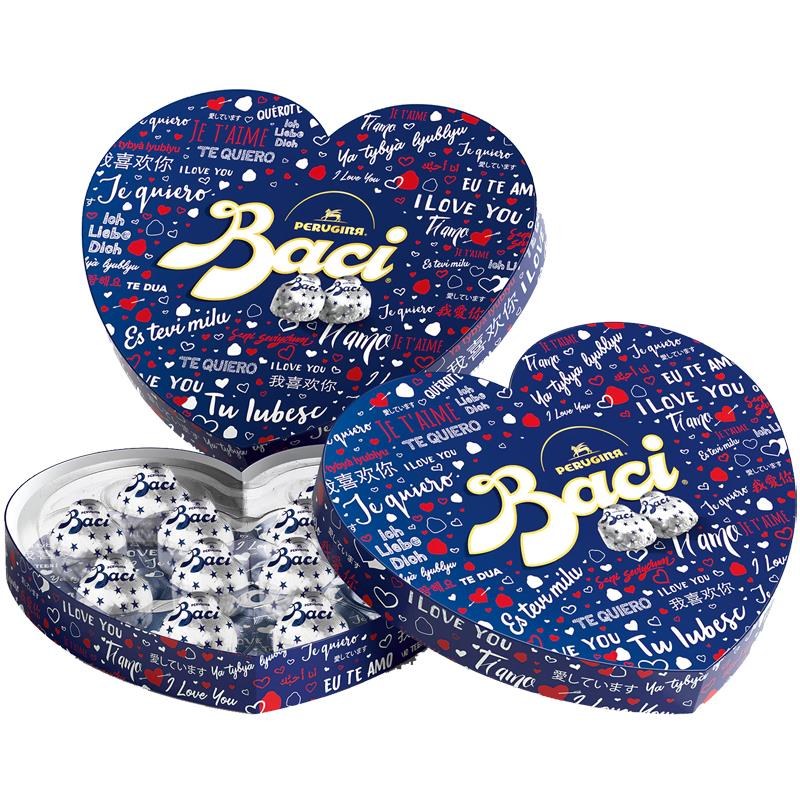 Confezione regalo Baci Perugina con scatola a forma di cuore in cartone con all'interno 8 Baci al gusto classico.